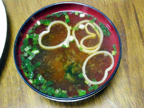 味噌汁のおあげがハートだ!